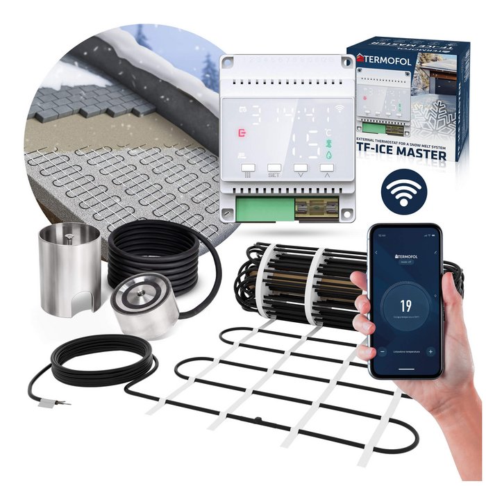 Systém by mal byť doplnený regulátorom s čidlom teploty a vlhkosti, ktorý automaticky zapína vykurovanie len pri potrebe – napr. počas sneženia alebo mrznúceho dažďa.