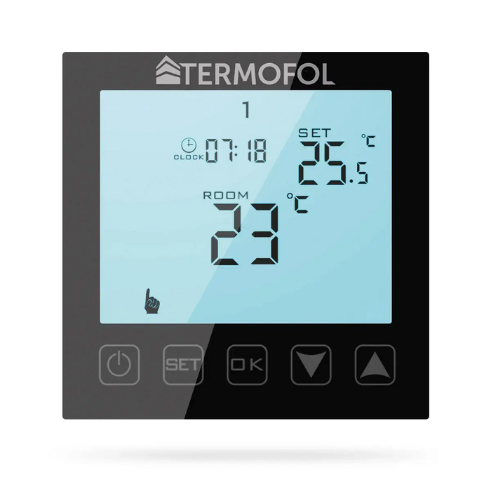 TERMOFOL TF-H1 Mark II je moderné, plne programovateľné podomietkové termoregulačné zariadenie vybavené LED ovládacím panelom, určené na riadenie elektrických vykurovacích systémov. Termoregulačné zariadenie sníma teplotu z vnútorného aj vonkajšieho teplotného senzora. Modré podsvietenie je mimoriadne čitateľné, aj pre osoby so zrakovým postihnutím. K dispozícii sú aj nasledujúce režimy prevádzky: meranie teploty miestnosti, meranie teploty podlahy a meranie teploty miestnosti s obmedzením teploty podlahy.