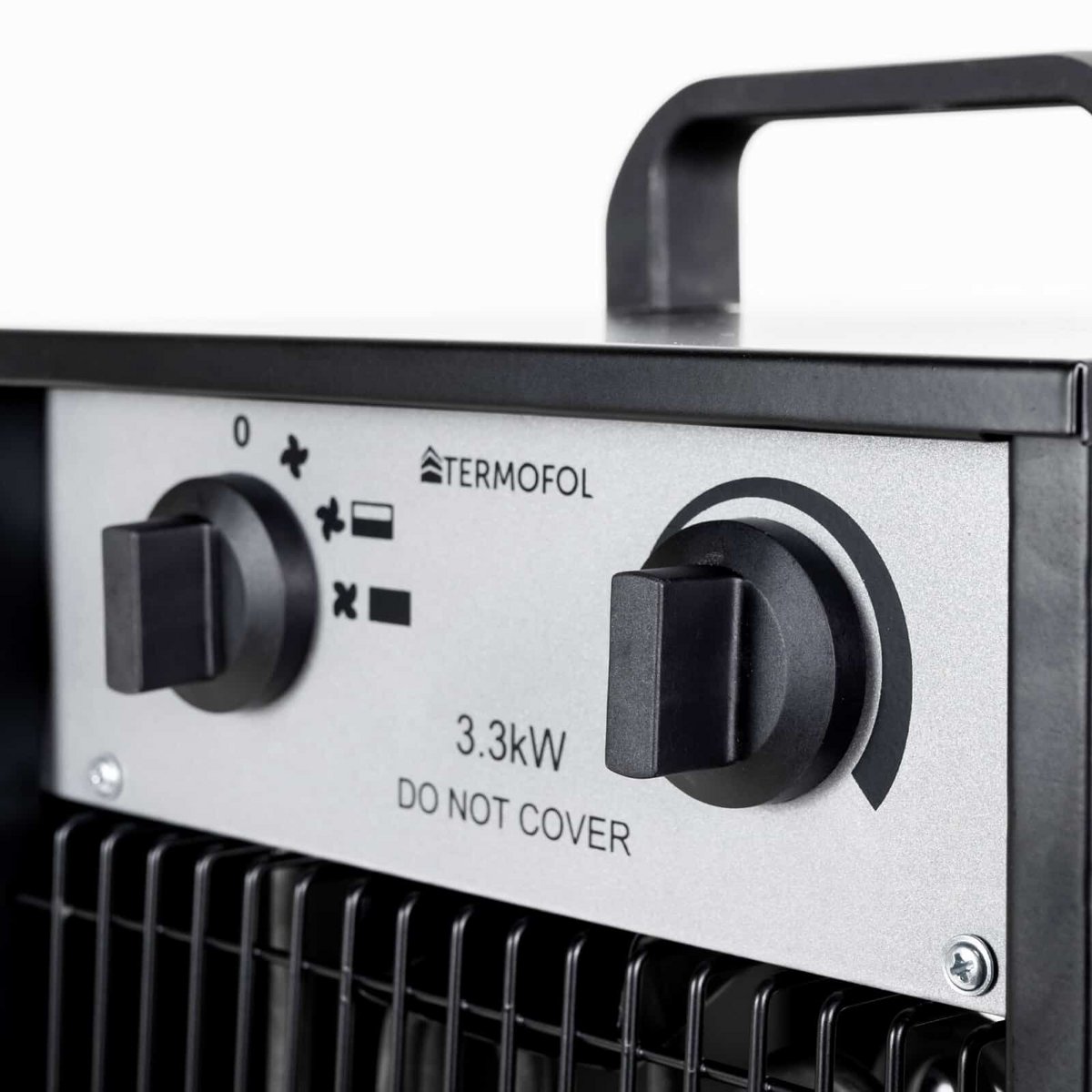 Priemyselné ohrievače Termofol sú mimoriadne funkčné zariadenia určené na prácu v náročných podmienkach stavby alebo rekonštrukcie. Ich hlavnou funkciou je rýchle a bezpečné ohriatie vzduchu vo vybraných miestnostiach. Konštrukcia zariadení je praktická a spoľahlivá. Elektrické ohrievače TERMOFOL nevytvárajú spaliny a nespotrebúvajú kyslík, vďaka čomu ich možno dlhodobo používať aj v uzavretých priestoroch bezpečným spôsobom. Ohrievače pracujú ticho a efektívne, osvedčujú sa pri vykurovaní, vysušovaní priestorov a pri dohriatí skladov alebo dielní. Pevné, kovové telo poskytuje ochranu pred mechanickým poškodením, ktoré je na stavbe bežné. Praktická rukoväť a kompaktné rozmery umožňujú jednoduchý transport. Veľké, ergonomické ovládače poskytujú plnú kontrolu nad teplotou.