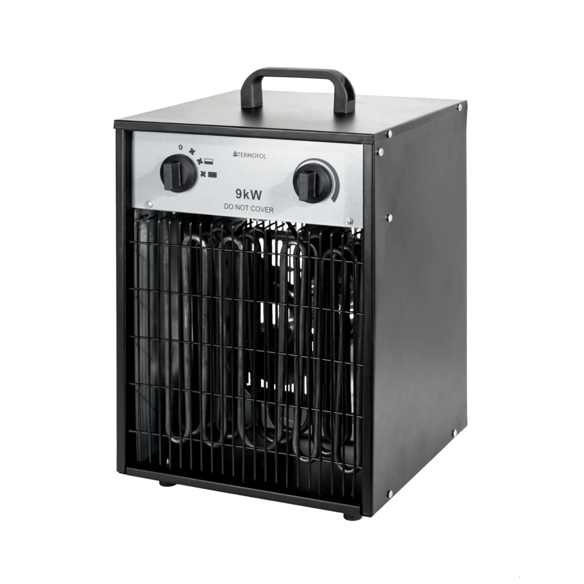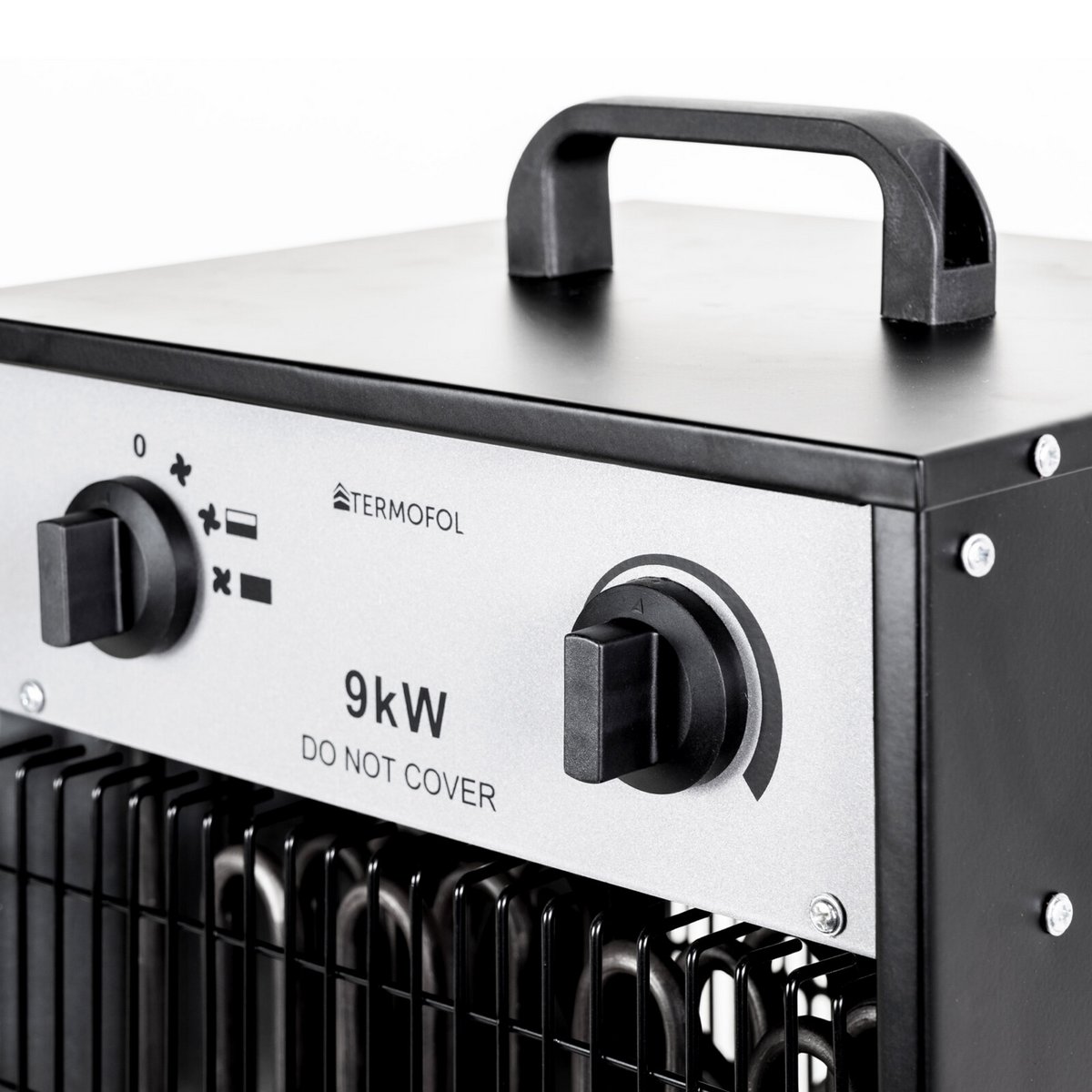 Priemyselné ohrievače vzduchu Termofol sú mimoriadne funkčné zariadenia určené na prácu v náročných podmienkach stavby alebo rekonštrukcie. Ich hlavnou úlohou je rýchle a bezpečné ohriatie vzduchu vo vybraných priestoroch. Konštrukcia zariadení je praktická a spoľahlivá. Elektrické ohrievače TERMOFOL neprodukujú spaliny a nespotrebúvajú kyslík, vďaka čomu je možné ich dlhodobo bezpečne používať aj v uzavretých miestnostiach. Ohrievače pracujú ticho a efektívne, osvedčujú sa pri vykurovaní aj vysúšaní priestorov, ako aj pri prikurovaní skladov alebo dielní. Pevné kovové puzdro poskytuje ochranu pred mechanickým poškodením, ktorému sa na stavbe ťažko vyhnúť. Praktická rukoväť a kompaktné rozmery umožňujú jednoduchú prepravu. Veľké ergonomické otočné ovládače poskytujú plnú kontrolu nad teplotou.