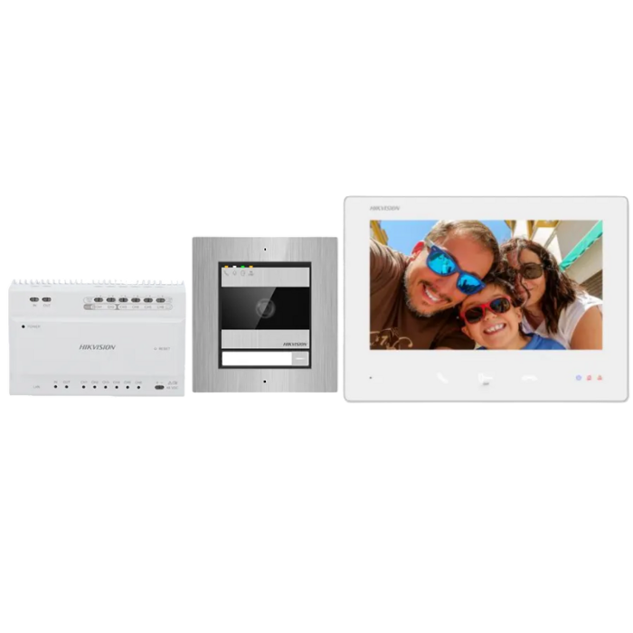 V tomto sete nájdete všetko potrebné: vnútornú jednotku DS-KH7300EY-WTE2 s 7-palcovým dotykovým displejom (rozlíšenie 1024x600) a Wi-Fi pripojením, vonkajšiu kamerovú jednotku DS-KD7003EY-IME2 s jedným tlačidlom a vysokou odolnosťou (IP65, IK08), a napájací modul DS-KAD7060EY. Vďaka dvojvodičovej technológii je inštalácia mimoriadne jednoduchá a rýchla.