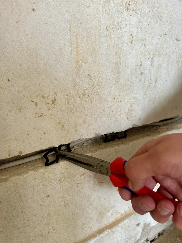 Namiesto sádry, klincov alebo peny – jedna spona, jedno stlačenie a kábel je bezpečne upevnený.
